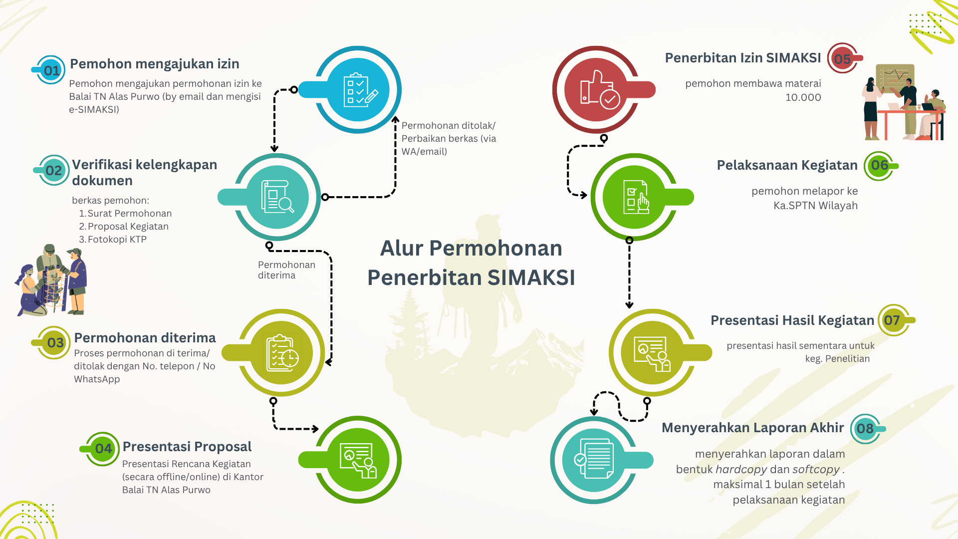Surat Permohonan ditujukan kepada Kepala Balai Taman Nasional Alas Purwo, Alamat Kantor : Jalan Brawijaya No. 20 Banyuwangi – Jawa Timur 68417